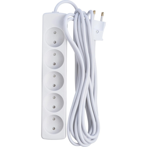5-Socket M/J med 5 meter kabel vit