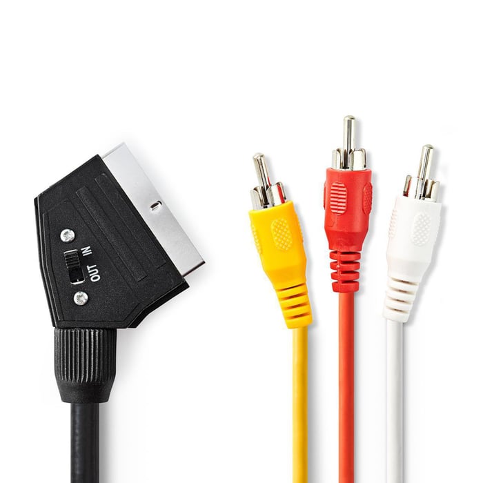Nedis SCART-kabel – SCART-kontakt – 3 x RCA-kontakt – nickelpläterad – omkopplingsbar – 480 p – 2,00 m – rund – PVC – etikett