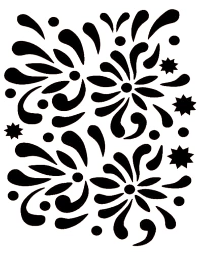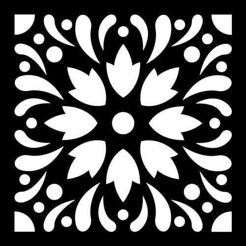 Artemio Schablone Home déco-carreau cement, glasspliter, fleuris, plast, svart, 17,5 x 0,2 x 21,5 cm
