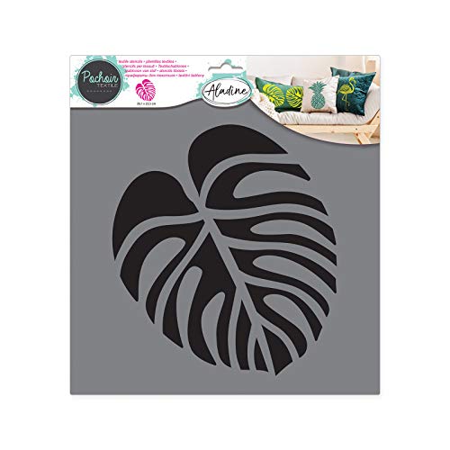 Aladine textil schablone Tropical Leaf – tygdekoration – för individuell utformning av duk, t-shirts, bärväskor, tvättbar – 28 x 28 cm – stor design