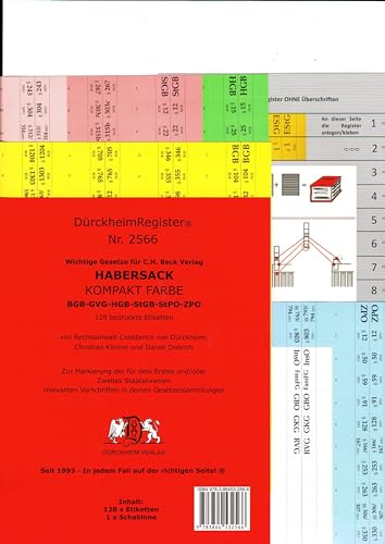 DürckheimRegister® Griffregister Nr. 2566 - Habersack Kompakt Farbe: 128 Registeretiketten (sog. Griffregister) und 1 Schablone für SCHÖNFELDER, ... ZPO, In jedem Fall auf der richtigen Seite®