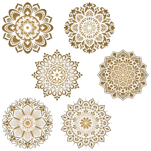 6 stora mandala-mallar, återanvändbara stenciler för gör-det-själv-målning, stenciler för väggdekoration, golv, kakel (30 x 30 cm)