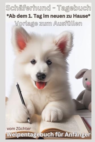 Weißer Schäferhund Geschenk - Mein Welpentagebuch, Buch : Vorlage mit Bildern zum Ausfüllen, ab dem 1.Tag, über die Welpen Entwicklung: Schöne ... erwachsenen Hund, Welpe Erst - Ausstattung