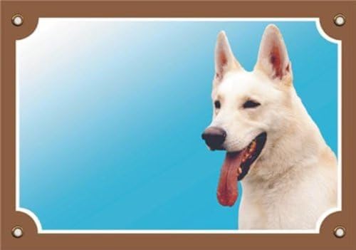 Varningsskylt tysk schäferhund vit gul 12 x 3,5 cm
