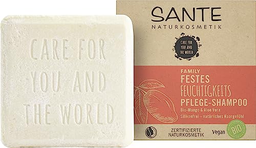 SANTE Naturkosmetik fast schampo för torrt hår, vegansk formel med ekologisk aloe vera och mango, fast fuktschampo, 1 x 60 g