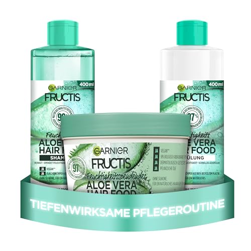 Garnier Hårset för torrt hår med aloe vera, med 3-i-1 mask, schampo och balsam, sorglös anti-frizz-vård, Fructis Hair Food Set, 3 x 400 ml
