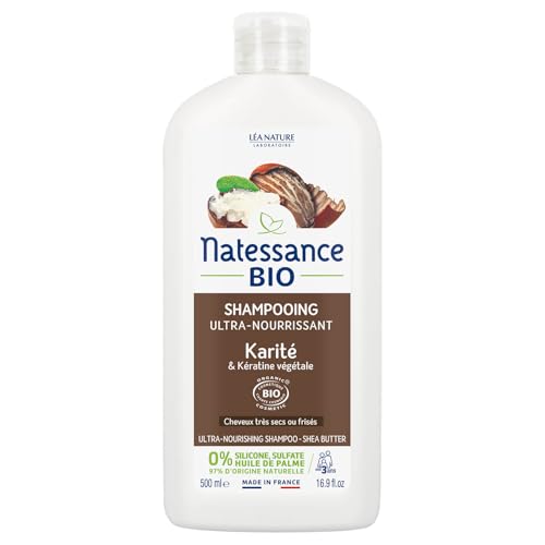 Natessance Ultra-närande ekologisk schampo, bio/keratin, certifierad biologisk, kosmos organik utan sulfater, palmolja, 100% vegetabilisk, 500 ml