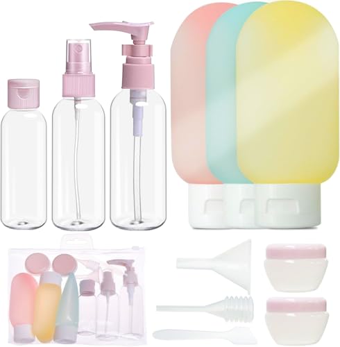 Luxiremi Resebehållare-set, resetillbehör, läckagesäker, klämbar, påfyllningsbar, med fickor för kosmetika, schampo, lotion, vätskor, 15 stycken, flerfärgad (färg-2)