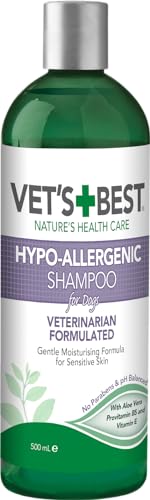 Vet's Best Allergivänligt schampo för hundar med känslig hud, lindrar obehag från torr, kliande hud, rengör, återfuktar och betingar hud och päls, 500 ml
