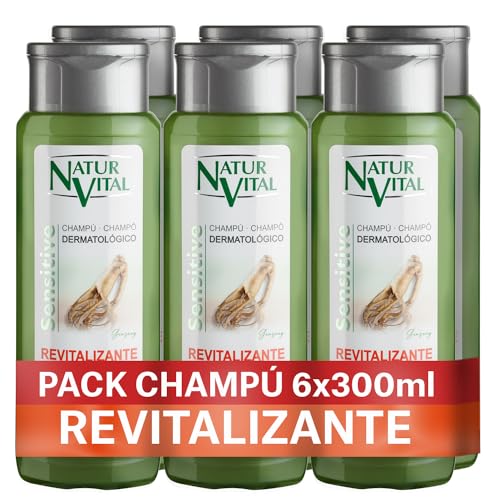NaturVital 6-pack för känsligt revitaliserande, paraben- och silikonfritt, naturligt schampo för svagt hår, atopisk och känslig hud, män och kvinnor, 6 x 300 ml