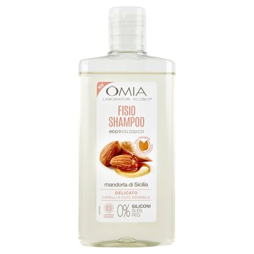 Omia, Fisio Eco Eco Shampoo med Sicilien mandel för hår och känslig hud, mild formel, schampo för frekvent tvätt, utan silikon och SLES, 200 ml flaska