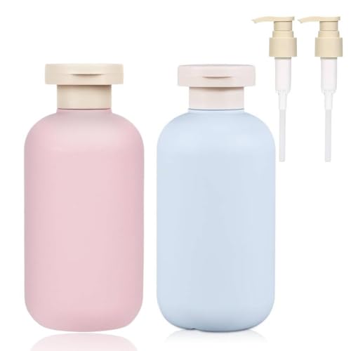 Reseschampoflaskor 2 st med flip-lock och pump, reseflaskor för toalettartiklar, 200 ml, tomma läckagesäkra kläm-resebehållare, för toalettartiklar, schampo och balsam (Rosa+Blå)