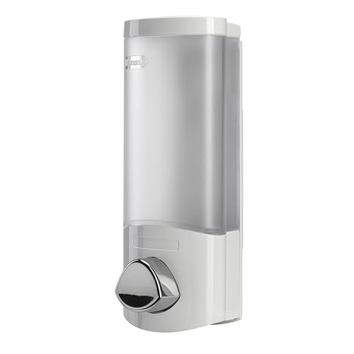 Croydex väggmonterad tvåldispenser – eliminerar duschröra, lätt att fylla på och har en förmätt pump för din duschgel, schampo och balsam, montera på hörn eller platt vägg (vit, 350 ml)