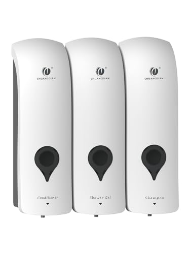 Stilren schampo- och balsamdispenser, set om 3, moderna påfyllningsbara flaskor, 620 ml, med pump och etiketter, lätta att fylla på, dispenser för en snabb uppgradering av badrumsinredningen, vit