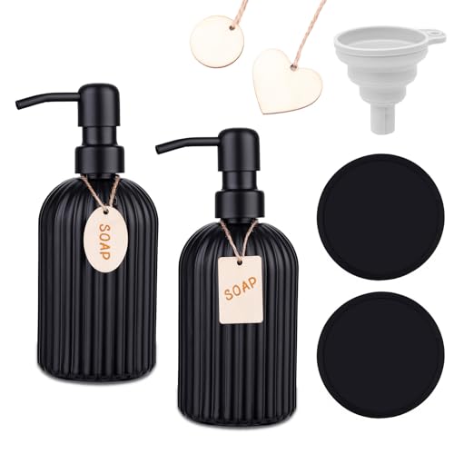 MOQAE Tvålpump glas, 400 ml diskmedelsdispenser med pump i rostfritt stål, tvålpump svart set för kök och badrum, påfyllningsbar pumpflaska för flytande tvål, schampo, balsam och duschgel