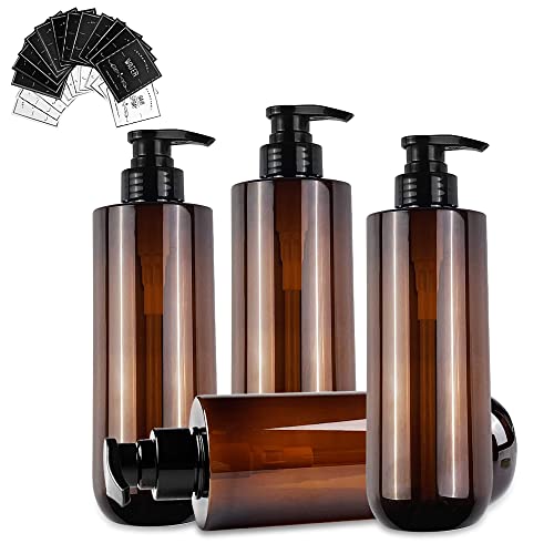 BasedFloor schampo och balsam dispenser flaskor – 3 st 500 ml plast tom påfyllningsbar pump lotion flaska behållare set för gäst badrum dusch kroppstvätt (bärnsten)