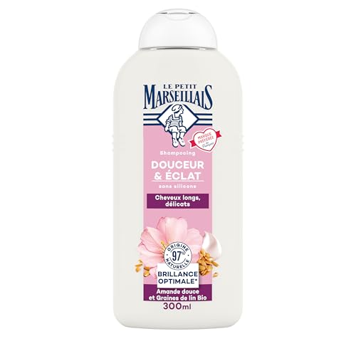 Le Petit Marseillais | Milt och glansigt schampo mandel och ekologiska linfrön (300 ml flaska) – schampo för långt och känsligt hår – optimal hårvård utan silikon