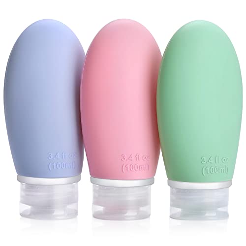 Opret 100 ml reseflaskor i silikon, 3 stycken läckagesäkra påfyllningsbara bärbara resebehållare för schampo, krämsköljning, BPA-fri och TSA-testad