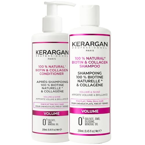 Kerargan - Duo volymgivande schampo och balsam med biotin och kollagen platt, fint och tråkigt hår - ökar glans och struktur - sulfatfri, GMO, silikon, mineralolja - 2 x 250 ml