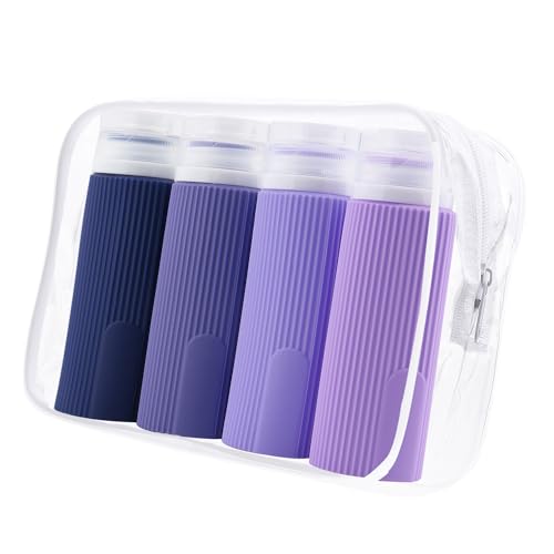 Alyvisun 4 Stycken Reseflaska Silikon 100 ml, [Påfyllningsbara & Läckagesäkra] Resbehållare, Små Squeeze Reseflaskan för Schampo, Lotion, Toalettartiklar