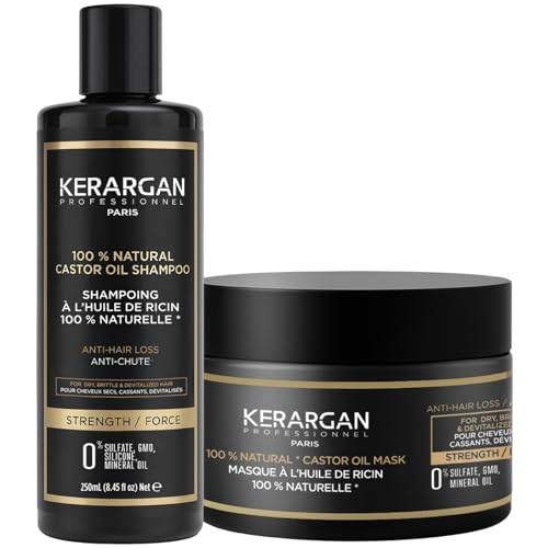 Kerargan - Duo anti-fall schampo och mask med ricinolja för torrt, försvagat, devitaliserat hår - ökar tillväxten - sulfatfri, silikon, GMO - 2 x 250 ml