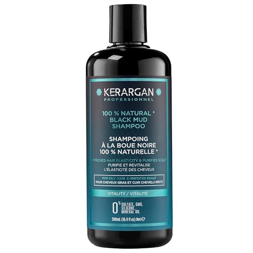 Kerargan - Schampo med Förnyande Dödahavsslam för Fett Hår och Irriterad Hårbotten - Rengör och Förnyar - Utan Sulfater, GMO, Silikon, Mineraloljor - 500ml