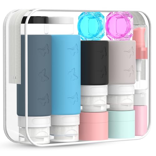 Set med 26 Reseflaskor för Toalettartiklar, Pressbara Silikon Reseflaska, Tomma Läckagesäkra Påfyllningsbara Resebehållare i Resestorlek för Schampo, Balsam, TSA-godkända Resetillbehör