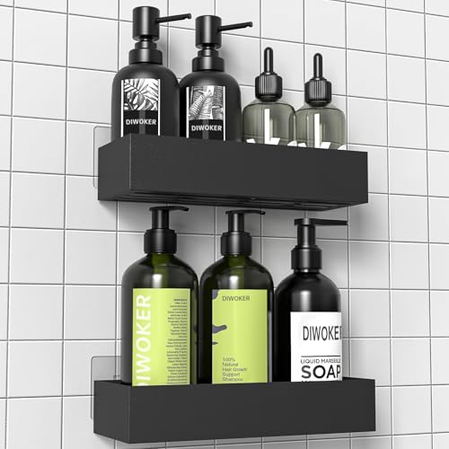Diwoker Duschhylla Utan Borrning, 2 Stycken Duschhylla Badrumsarrangör, Schampohållare för Dusch Svart