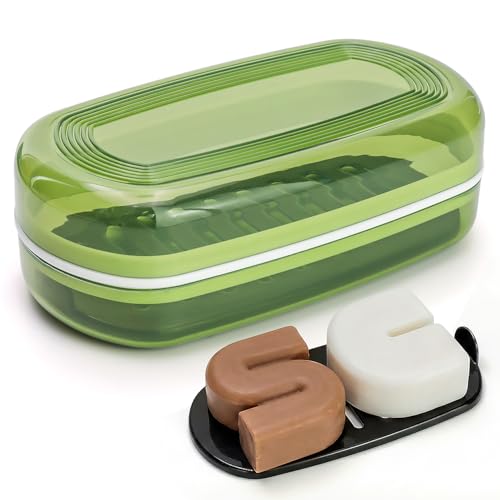 AIDIMMING Schampohållare, tvålfodral, stor schampo och balsam tvål skål, tvålbox för ansiktsrengöring, tvålbehållare för resor, camping, gym, badrum (max, grön)