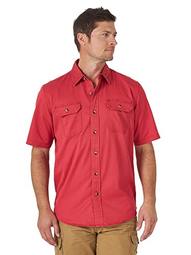 Wrangler Authentics herr Weather Anything kortärmad vävd skjorta skjorta med button-down-krage, Scharlakansröd, M