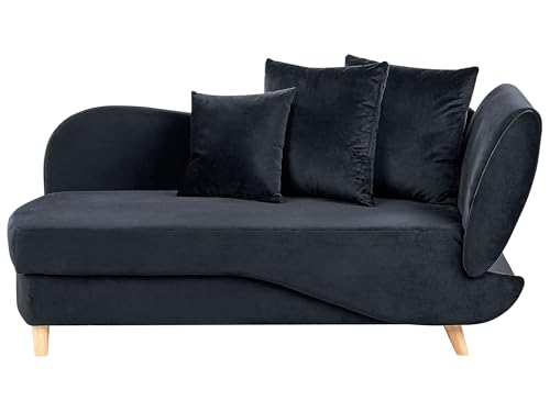 Modern Höger Schäslong 2-sits Förvaring Sammet Svart Meri II