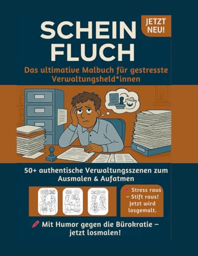 SCHEIN FLUCH: Das ultimative Malbuch für gestresste Verwaltungsheld*innen: 50+ authentische Verwaltungsszenen zum Ausmalen & Aufatmen - Mit Humor gegen die Bürokratie