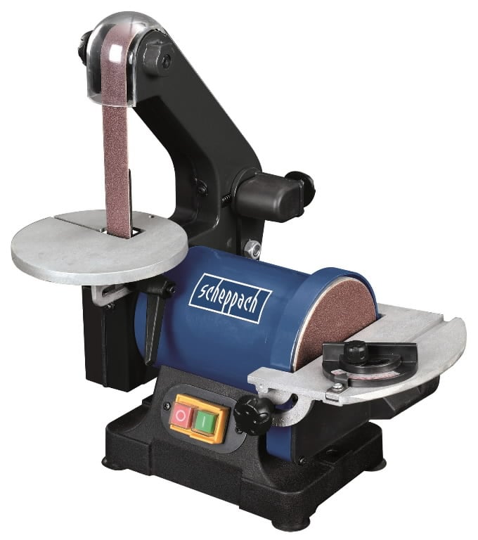 Scheppach 4903304901 bandslipare BTS700 (tallrikslipare, 50 W, bandlängd 762 mm bredd 25,4 mm, slipmaskinØ 125 mm, 90 ° – 45 ° justerbart bord, hastighet 816 m/min), färgad, one size