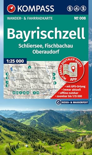 KOMPASS Wanderkarte 008 Bayrischzell, Schliersee, Fischbachau, Oberaudorf 1:25.000: Wander- und Fahrradkarte in einem - inklusive Offline-Verwendung ... Radwege. Skitouren. Langlaufen. Reiten.