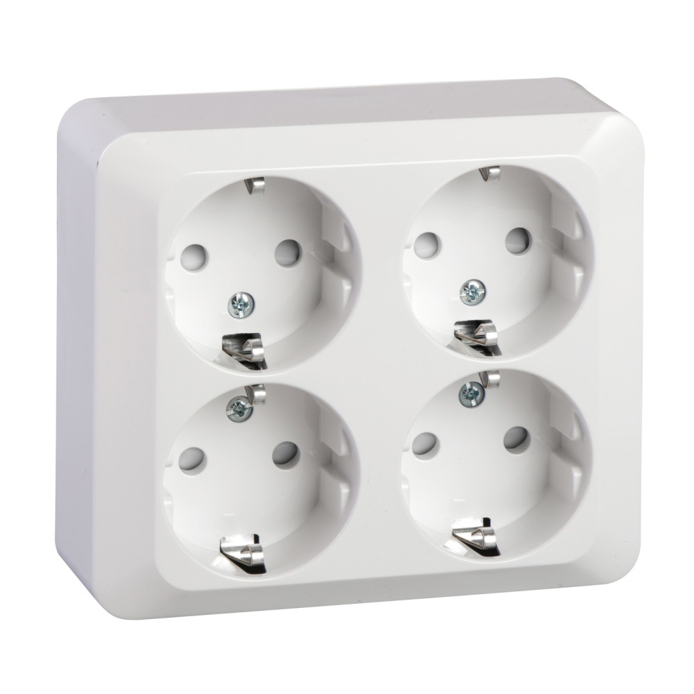 Schneider Electric Exxact WDE002294 Vägguttag 2-vägs, vit, IP44, utanpåliggande Lås, skruvanslutning