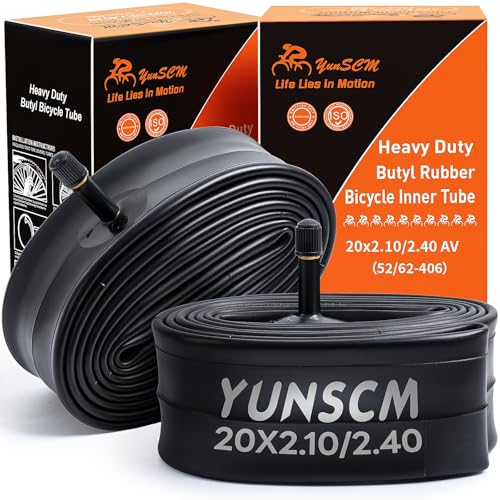 YunSCM 2-pack 20 tum cykel innerrör 20x2.10/2.40 ETRTO 54/64-406 AV32mm Schrader-ventil kraftiga innerrör kompatibla med 20x2.1 20x2.125 20x2.20 20x2.25 20x2.3 20 x 20 .35 20 x 2,40 MTB cykeldäck
