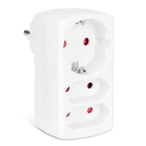 Grenuttag 3-Vägs,Uttagsadapter 3 Uttag Ansluts 1 Schuko 2 Euro Kontak,Uttagslist Väggmontering Multikontakt med Strömbrytare,Grenkontakt överspänningsskydd Multipeluttag Väggkontakt Skyddskontakt,Vit