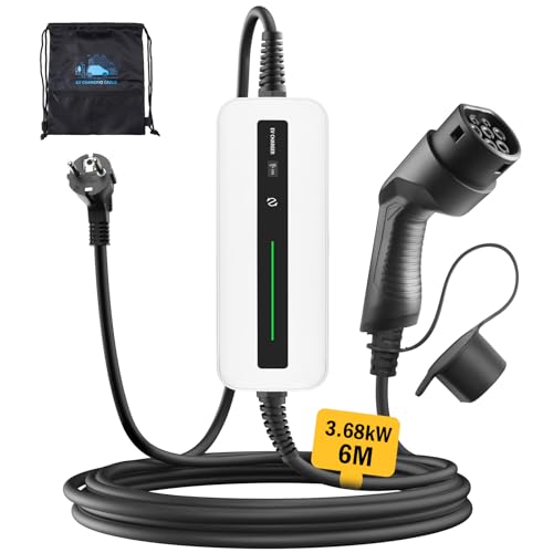Morec 8/10/13/16A elbilsladdkabel av, elbilsladdare, typ 2 EU-standard, omkopplingsbar laddningsbox, 2-polig schuko, IEC 62196-2, elbil EVSE (euro-kontakt), max 3,6 kw, 6 m