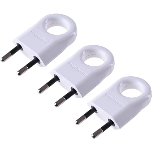 Platt kontakt med runt hål, 230 V-kontakt, 6A, Schuko-kontakt - platt, Euro-kontakt, EU-platt kontakt, nätkontakt - platt, euro - 2-stifts platt kontakt, vit, 3 stycken
