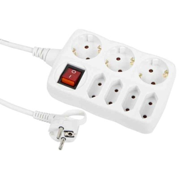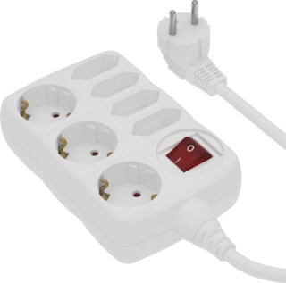 Grenuttag 3 schuko, 4 euro med brytare 1,4m vit