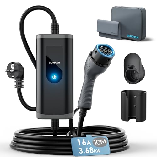 bokman EV-laddare typ 2 till Schuko-kontakt, 10M / 3,68kW / 16A / IP65 vattentät, elektrisk billaddare med LED-indikatorer, typ 2 laddningskabel Schuko med bärväska och mikrofiberhandduk