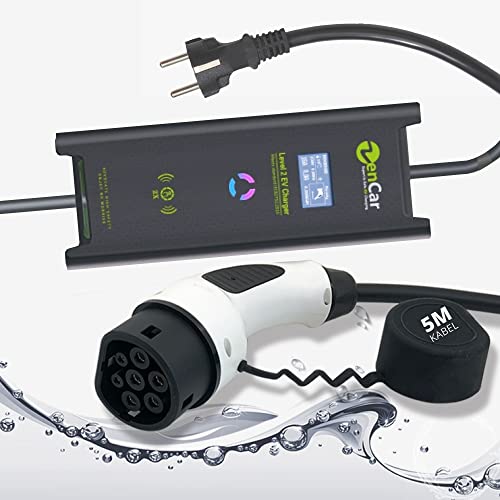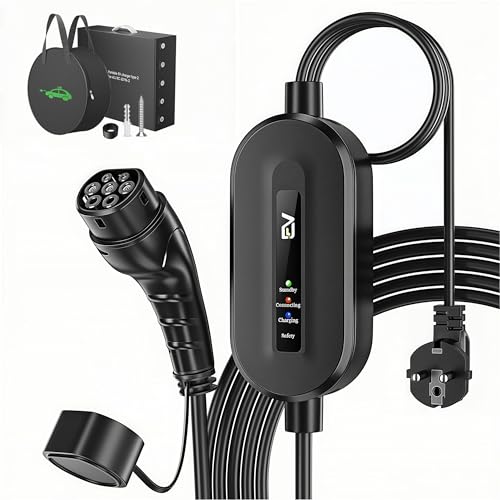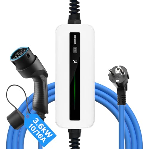 VDLPOWEREU EV laddare typ 2, elbilladdare 16A, 3,6 KW/5M kabel för elfordon, enfas EU Schuko, IP65 (IEC 62196-2), kompatibel med MG4, Peugeot, Tesla, e-208