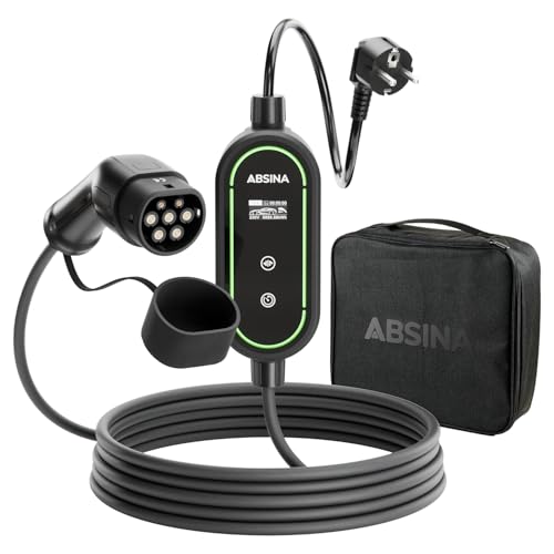 ABSINA Typ 2 laddningskabel Schuko med justerbar laddningseffekt – ICCB laddningskabel 3,7 kW, 16 A, 1-fas IP67 med 6,40 m kabel – laddningskabel Schuko till typ 2 för i3, e-Up, ID.3, ID.4, Zoe