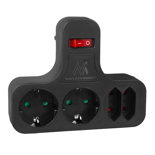 Maclean eluttag, fyrdubbelt med på/av-brytare, stabiliseringsfot, schuko-typ, 2x2,5A, 2x16A, MCE224 G/B