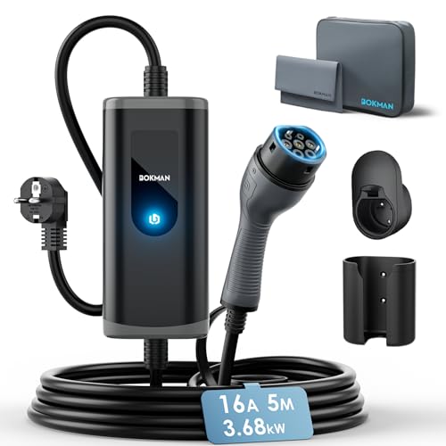 bokman EV-laddare typ 2 till Schuko-kontakt, 5M / 3,68kW / 16A / IP65 vattentät, elektrisk billaddare med LED-indikatorer, typ 2 laddningskabel Schuko med bärväska och mikrofiberhandduk
