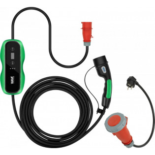 Wave EV 3-fas elbilsladdare med Schuko-adapter, 11 kW, 3 x 16 A, Typ 2, 5 m, svart