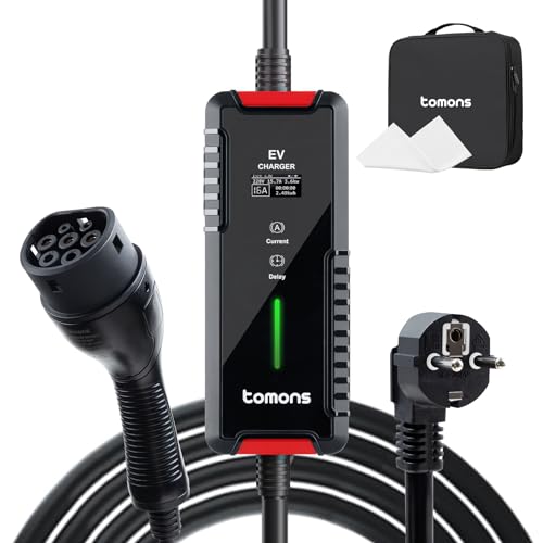 tomons Typ 2 laddningskabel Schuko 3,5 kW, 16 A, 6 m, mobil vägglåda, elbilladdare, EV-laddare med LED-display och fördröjningsfunktion (omkopplingsbar ström 6/8/10/13/16 A)