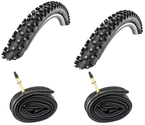 2 Däck + 2 Slangar Schwalbe Ice Spiker Pro 29x2,25 med Presta Ventil