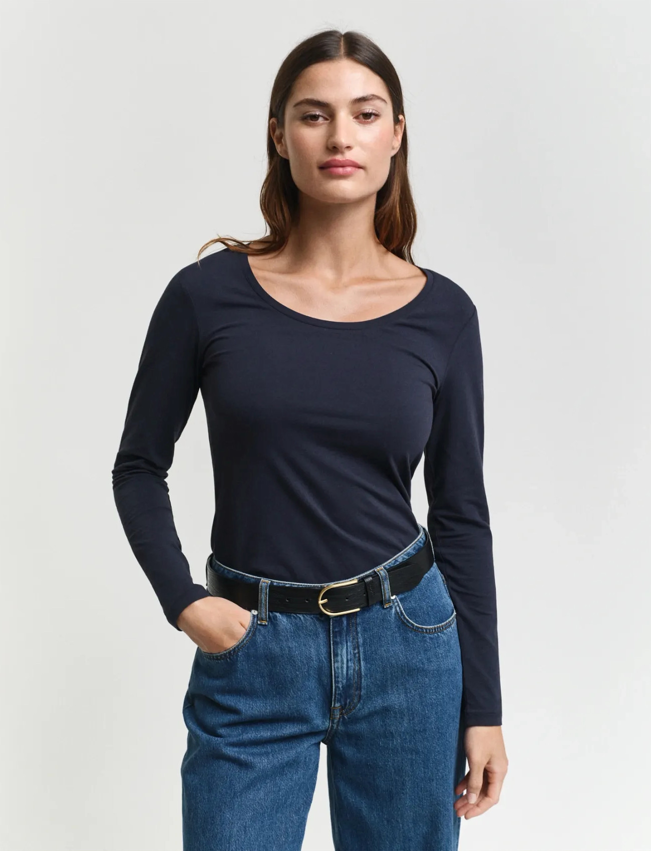 GANT Slim Cot/Ela Ls Scoop Neck Top - Navy - XS