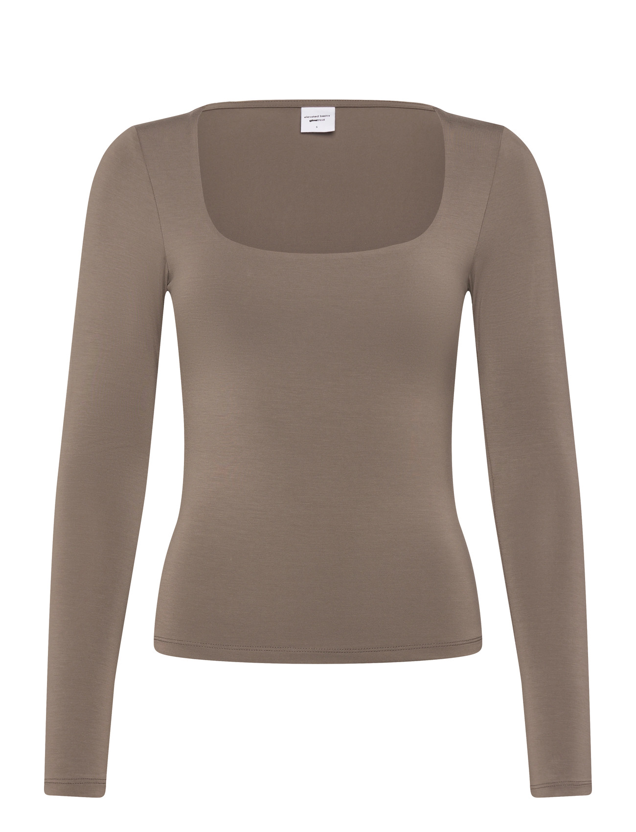 Gina Tricot Slim Fit Scoop Neck Top - Brown - XS